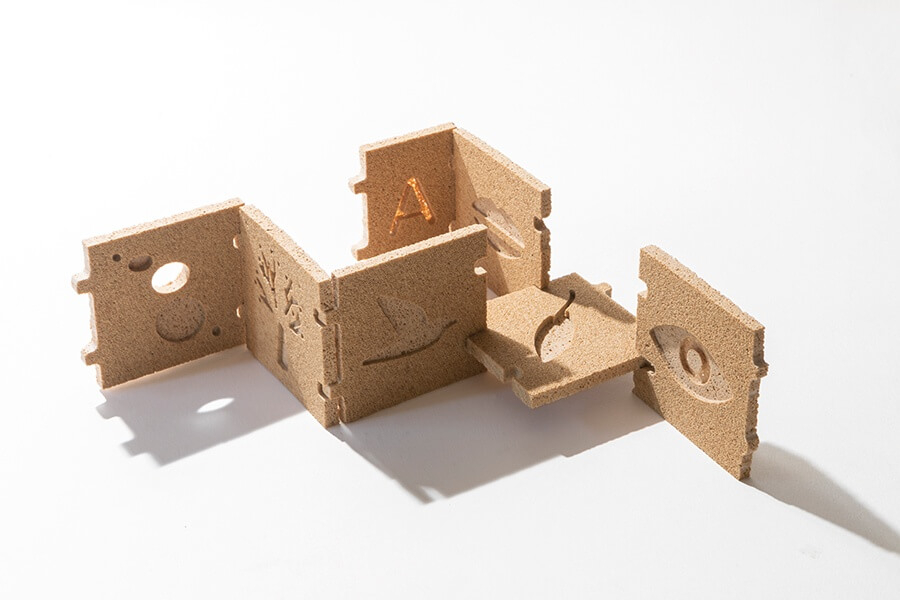 Naifactory se ha centrado en diseños para el interior, donde la idea de desarrollar juguetes ha sido un reto muy importante. Según comentan “los juguetes, en el mercado actual tienen una de las vidas más cortas y el 90% de ellos están fabricados con plásticos”. La versión granulada de Re Olivar proporciona un aspecto, textura y función similar a la madera. Y, además, tiene una gran ventaja; cuando la niña o el niño están cansados de jugar con el juguete, puede derretirse el material para transformarlo en un nuevo objeto.