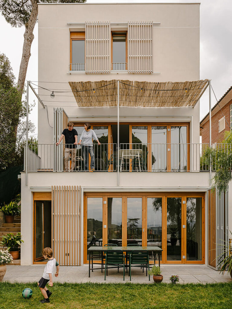 Vivir en un parque natural, con increíbles vistas, a pocos kilómetros de la ciudad de Barcelona es la opción de vida que ha escogido esta familia. Tras años de vivir en el centro de la ciudad encontraron el terreno ideal en Vallvidrera, dentro del parque natural de Collserola. Este emplazamiento les permite estar rodeados de naturaleza sin renunciar a la cercanía de su red familiar y de amigos, además de estar bien conectados con el centro urbano mediante transporte público.